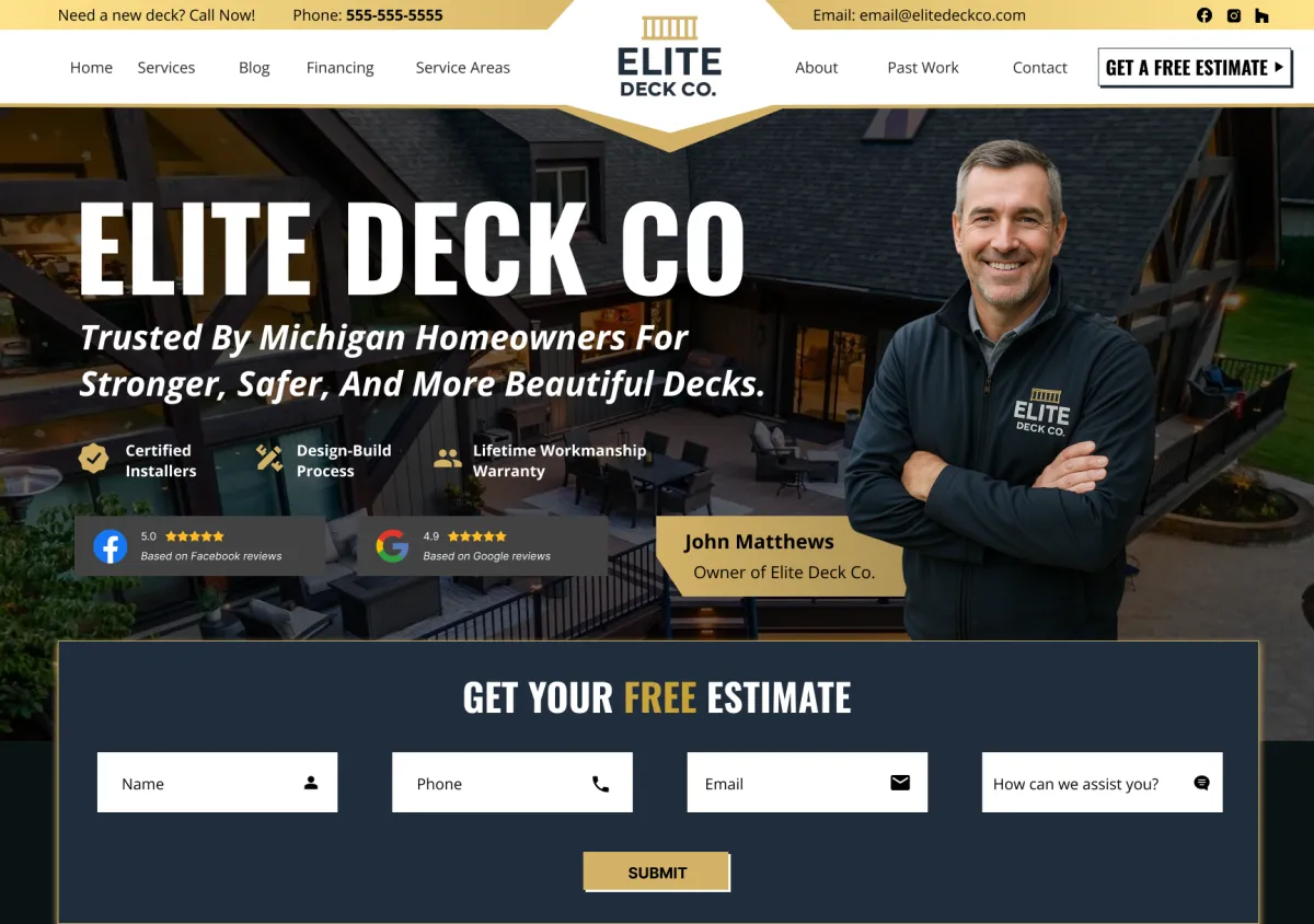 We build high-performance websites for deck builders that command respect, capture premium leads, and showcase your craftsmanship with architectural precision.